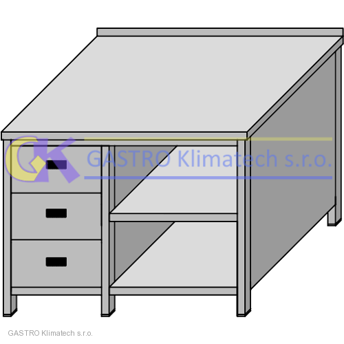 | SKŘÍŇOVÝ STŮL NEREZ SE ZÁSUVKOVÝM BLOKEM, POLICOVÝ |