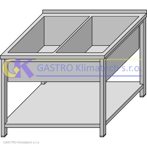 | PRACOVNÍ STŮL NEREZ SE SVAŘOVANOU DVOUDÍLNOU VANOU, S POLICÍ |