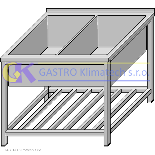 | PRACOVNÍ STŮL NEREZ SE SVAŘOVANOU DVOUDÍLNOU VANOU, S ROŠTOVOU POLICÍ |
