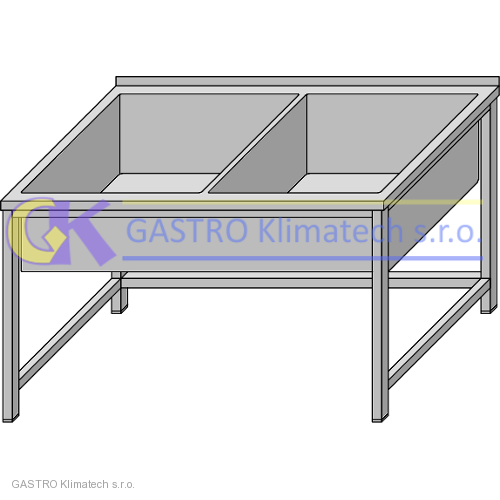 | PRACOVNÍ STŮL NEREZ SE SVAŘOVANOU DVOUDÍLNOU VANOU, S TRNOŽÍ |